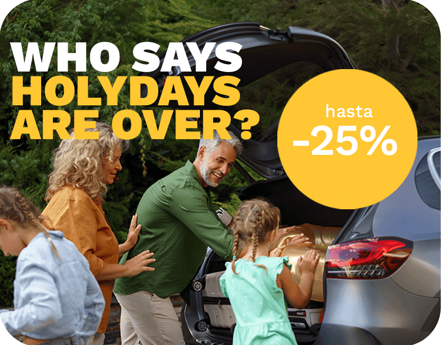 Los descuentos que se incluyen están sujetos a disponibilidad de stock en nuestras oficinas y serán únicamente aplicables sobre reservas de hasta 14 días de duración. Los descuentos se aplican únicamente al precio del alquiler, no a los extras. Oferta no acumulable a otras promociones.